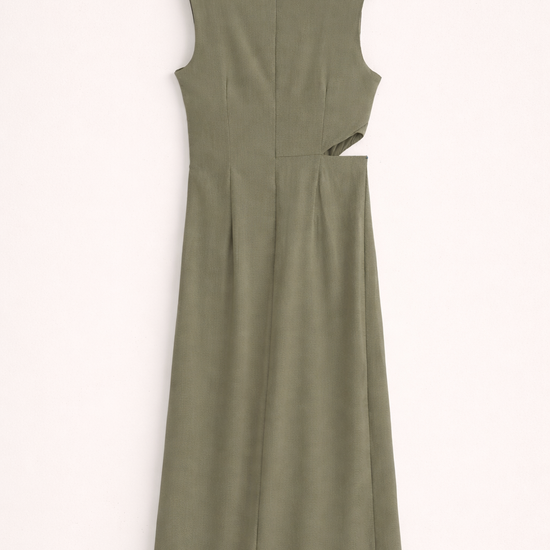 Dieses elegante Kleid überzeugt mit einem modernen, femininen Schnitt und einem besonderen Detail an der Taille. Die leicht asymmetrische Drapierung sorgt für eine schöne Silhouette und setzt die Figur stilvoll in Szene. Durch den cleanen, zeitlosen Look lässt sich das Kleid sowohl im Alltag als auch zu besonderen Anlässen tragen. Der fließende Stoff fällt angenehm und sorgt für hohen Tragekomfort, während der dezente Rückenzipper ein einfaches An- und Ausziehen ermöglicht. Perfekt kombinierbar mit Sandalen, Sneakers oder eleganten Heels – je nach Anlass.