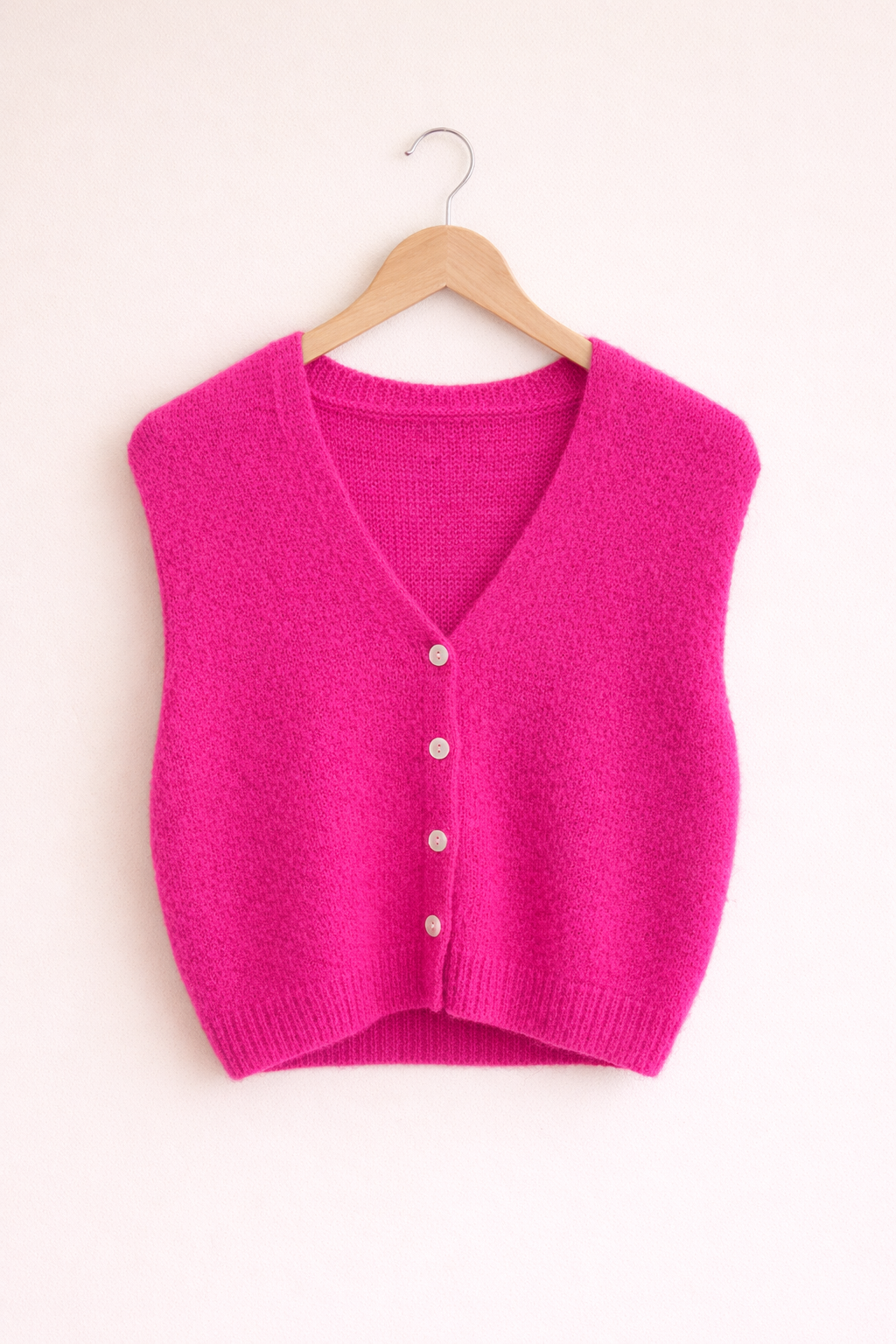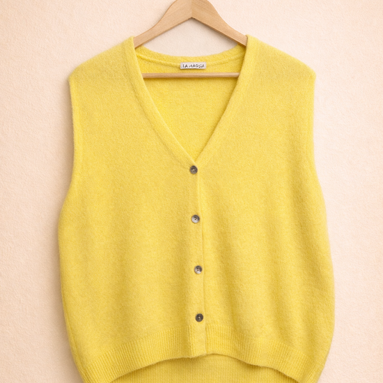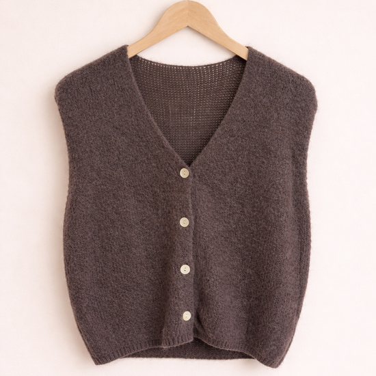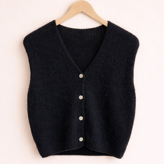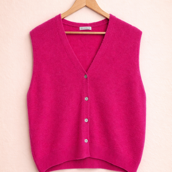 Pullunder Jessi Petit – Weste und Pullunder in einem! Dieses vielseitige Multitalent aus feiner Lanawolle vereint das Beste beider Welten. Mit vier eleganten Knöpfen vorne lässt sich dein neuer Favorit locker über Hemden, Shirts oder Blusen stylen – ganz wie es dir gefällt. Die ärmellosen Design schenkt dir maximale Bewegungsfreiheit, während der angenehm leichte Stoff den ganzen Tag über trägt. Perfekt für flexible Layering-Looks, die einfach funktionieren!